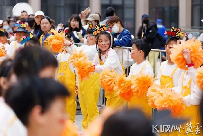 100名雄安新区同龄小使者组成的“雄安之星”加油团。边晨旭 摄赛事期间,雄马嘉年华开设近50家商户市集,涵盖美食、文创、互动体验等品类,吸引跑者和市民前来打卡。