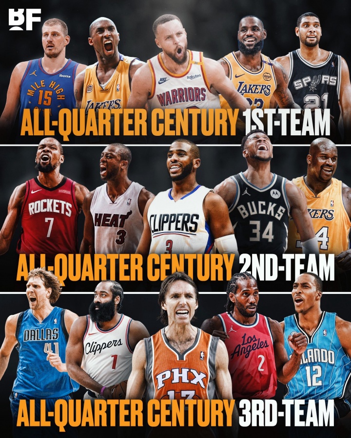 美国哥伦比亚广播公司体育频道(CBS Sports)近期评选了21世纪首25年最佳阵容名单